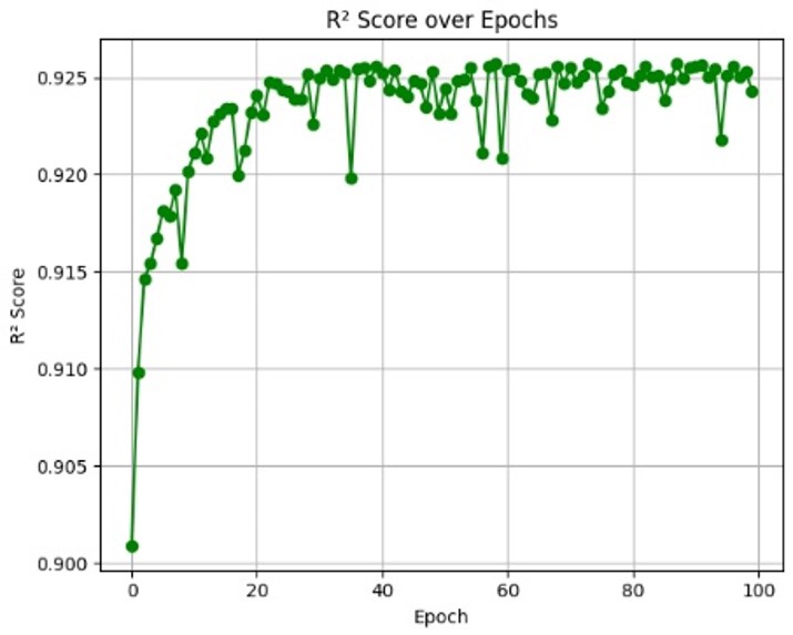 • 지표 설명: Coefficient of Determination (R²: 1에 가까울수록 우수), Mean Squared Error
